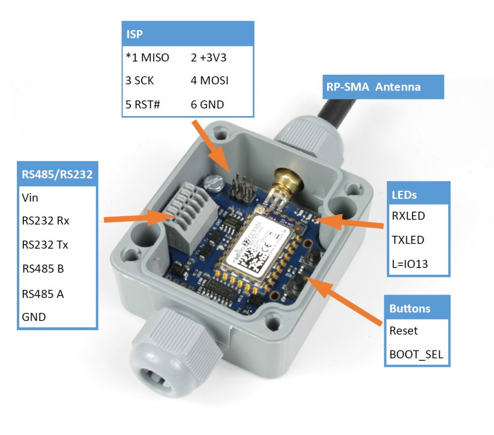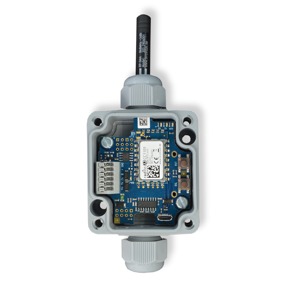 Die radino RS485/RS232-Bridge setzt Funk mit Hilfe eines radino32-Modules nach RS485 und/oder RS232 um. Aufgrund zweier separater UARTs können RS485 und RS232 parallel betrieben werden. Die Baugruppe ist wetterfest in ein IP65-Gehäuse verbaut und somit für den Außeneinsatz geeignet.